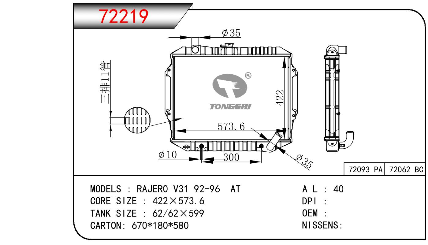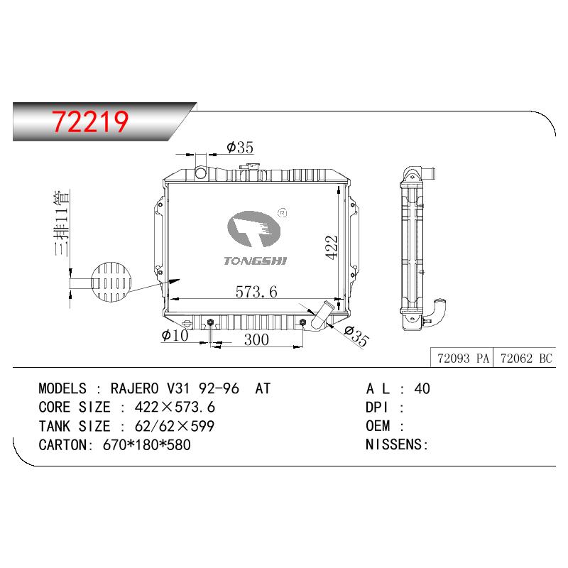 適用于奇瑞瑞虎(新款) MT散熱器 OEM : F1301000B1