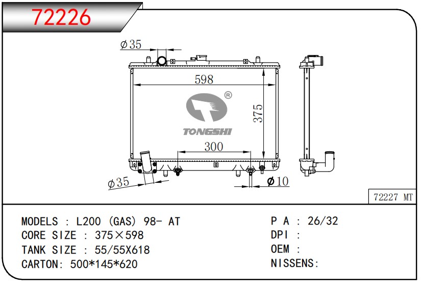 適用于奇瑞瑞虎(新款) MT散熱器 OEM : F1301000B1