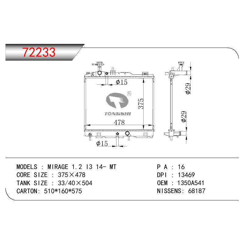 適用于奇瑞瑞虎(新款) MT散熱器 OEM : F1301000B1
