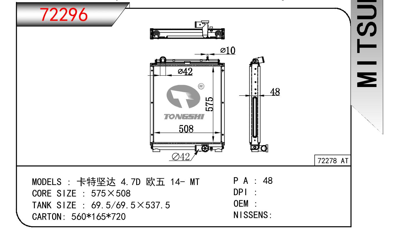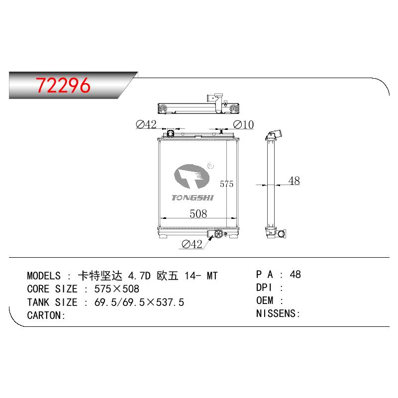 適用于奇瑞瑞虎(新款) MT散熱器 OEM : F1301000B1