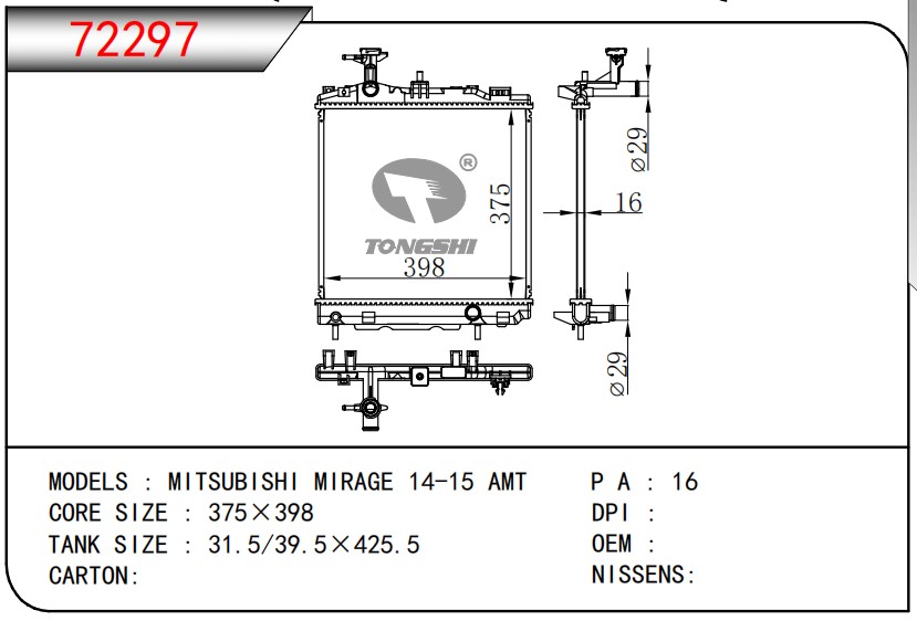 適用于奇瑞瑞虎(新款) MT散熱器 OEM : F1301000B1