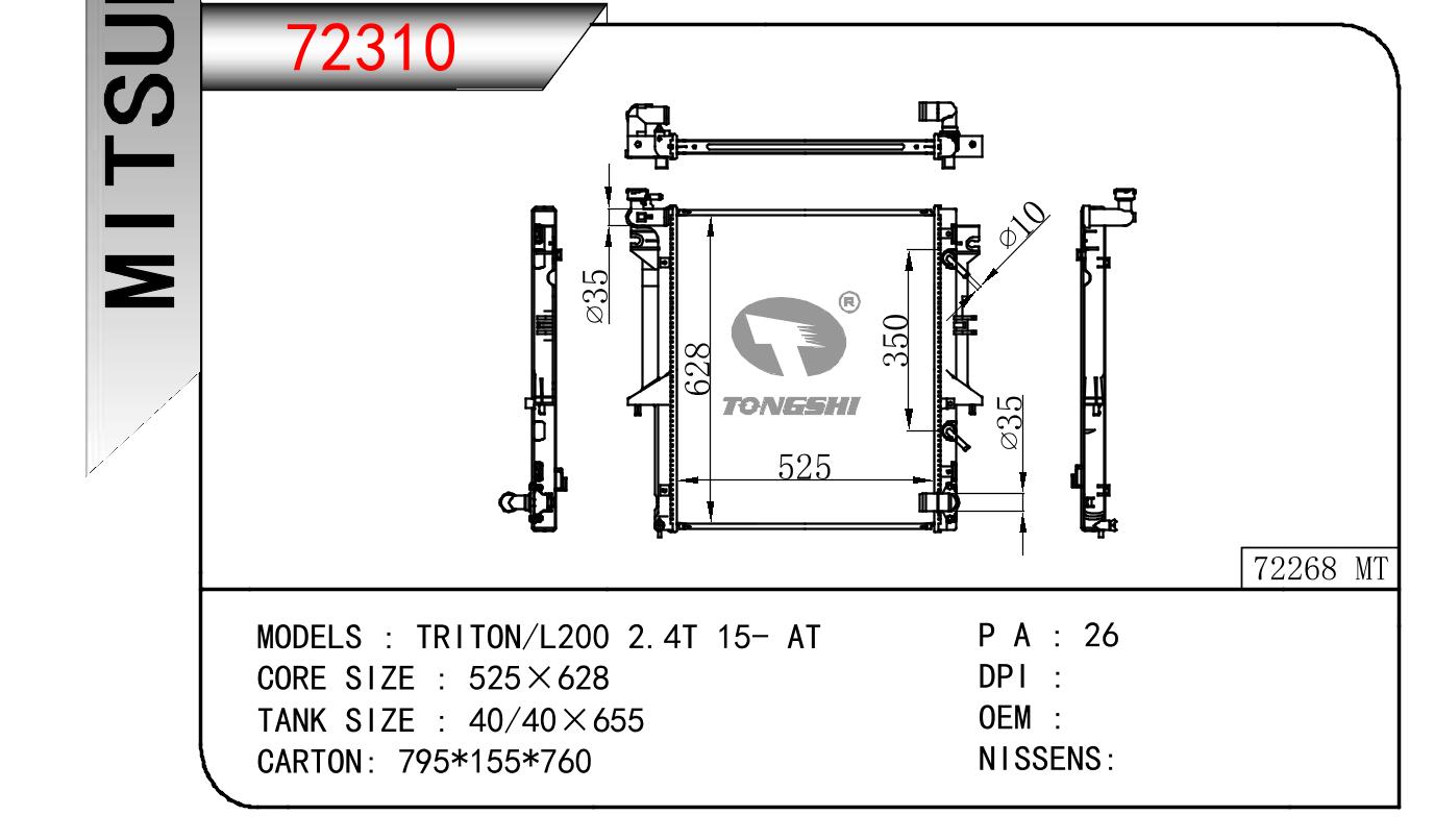 適用于奇瑞瑞虎(新款) MT散熱器 OEM : F1301000B1