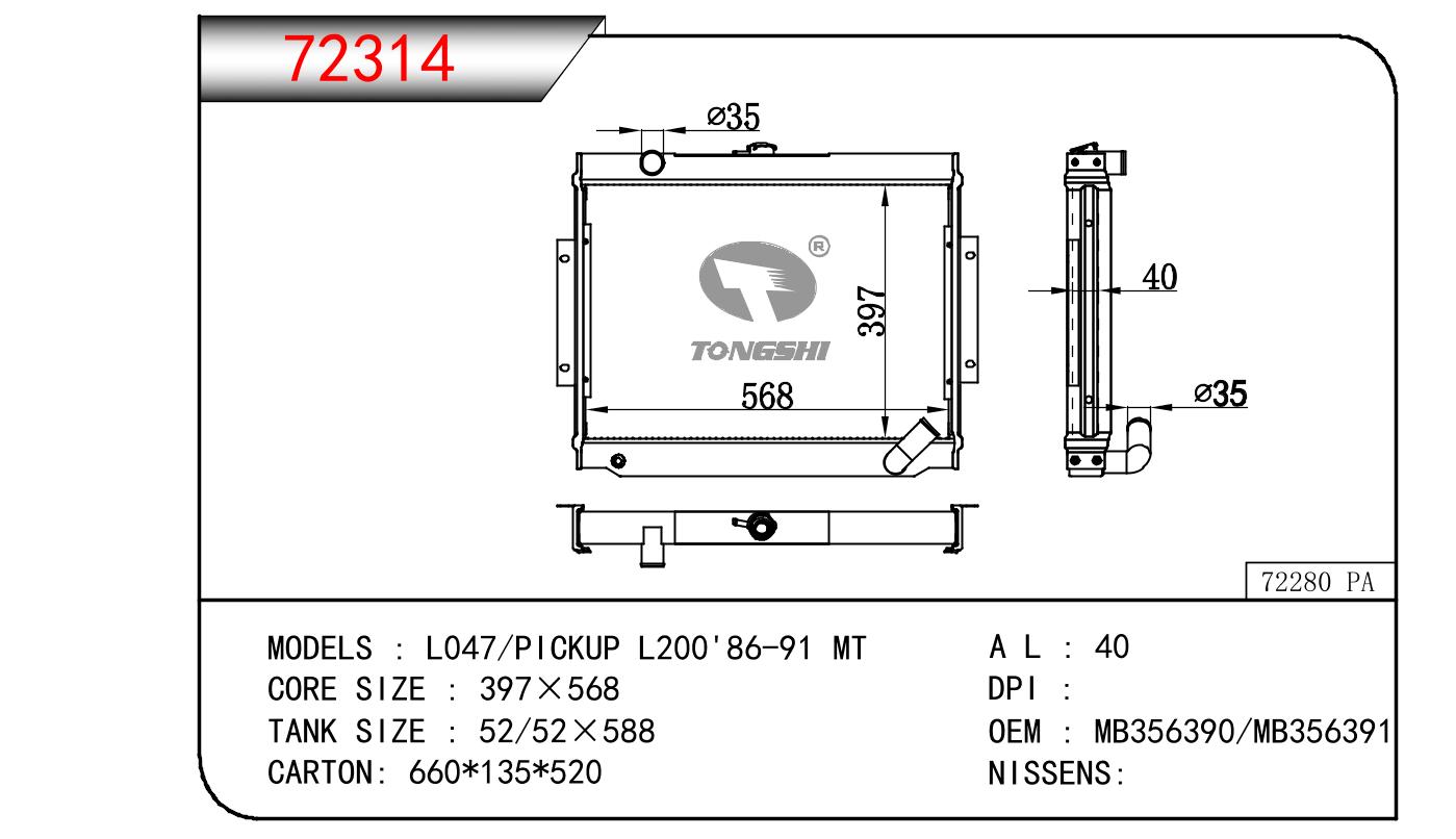 適用于奇瑞瑞虎(新款) MT散熱器 OEM : F1301000B1