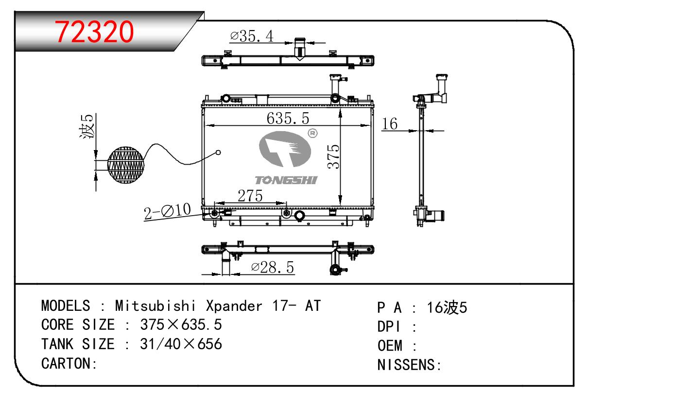 適用于奇瑞瑞虎(新款) MT散熱器 OEM : F1301000B1