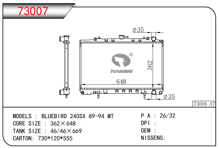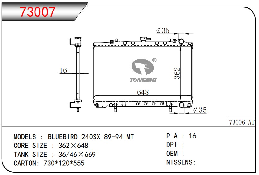適用于奇瑞瑞虎(新款) MT散熱器 OEM : F1301000B1