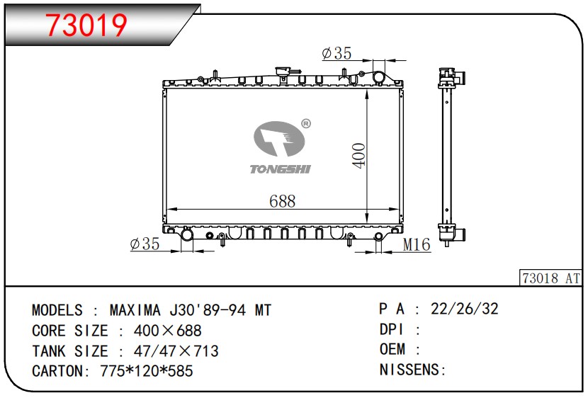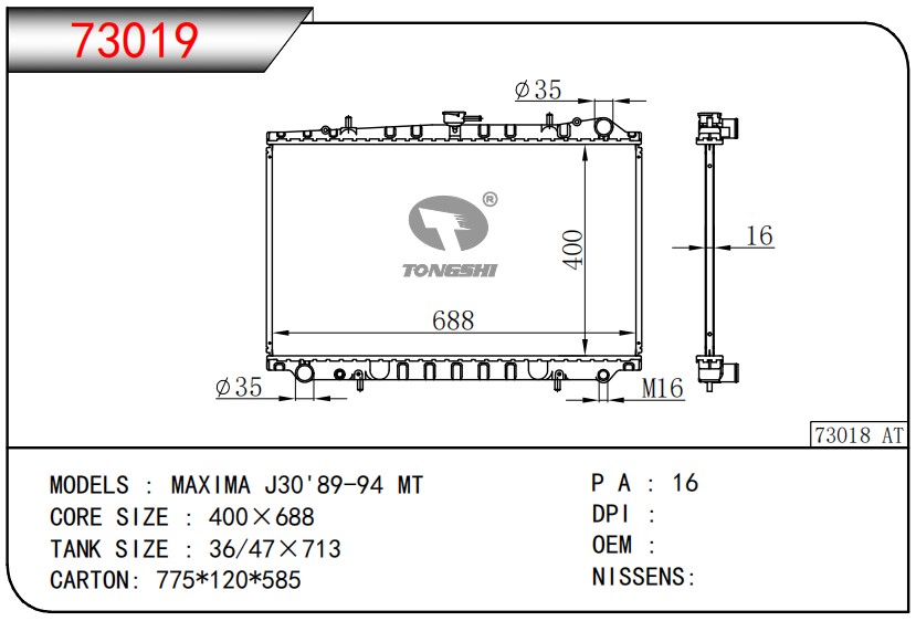 適用于寶馬 E30 320 i 82-93 AT散熱器OEM:1723 825/1719 261