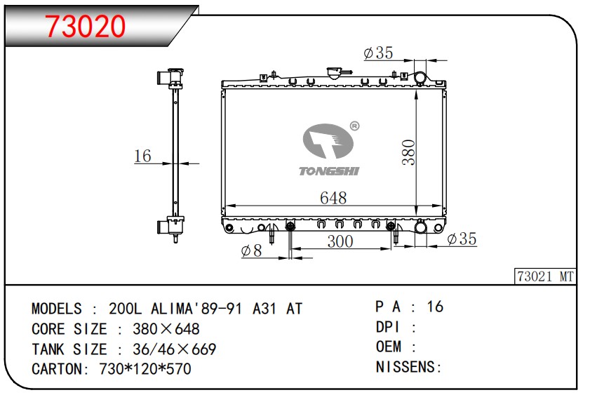 適用于寶馬 E30 320 i 82-93 AT散熱器OEM:1723 825/1719 261