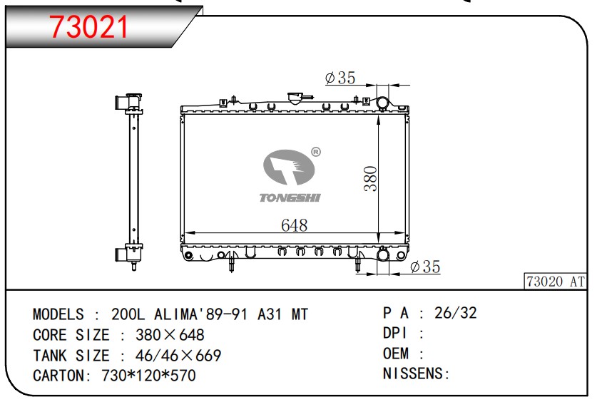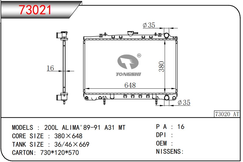 適用于寶馬 E30 320 i 82-93 AT散熱器OEM:1723 825/1719 261