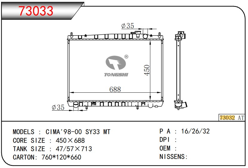 適用于奇瑞瑞虎(新款) MT散熱器 OEM : F1301000B1