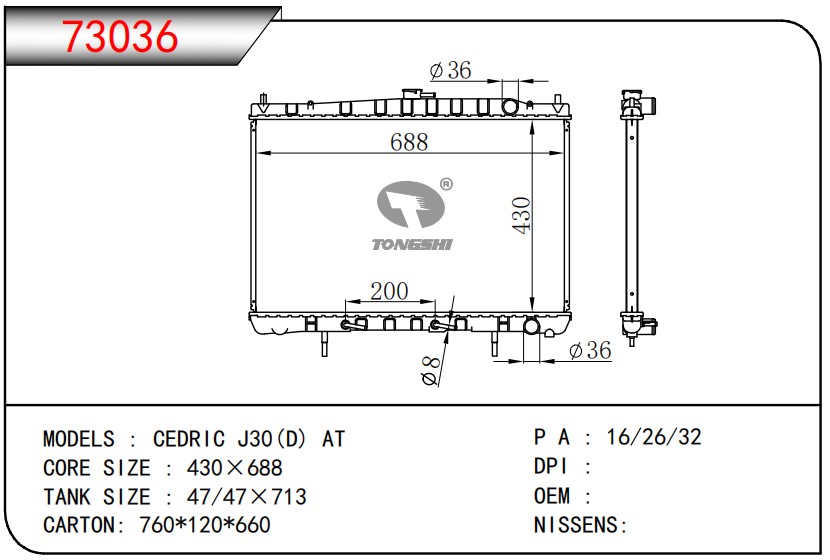 適用于寶馬 E30 320 i 82-93 AT散熱器OEM:1723 825/1719 261