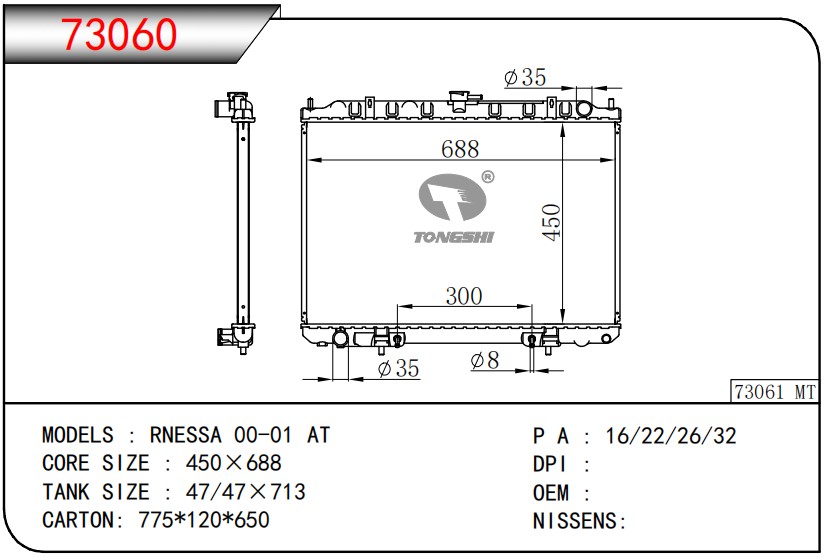 適用于寶馬 E30 320 i 82-93 AT散熱器OEM:1723 825/1719 261