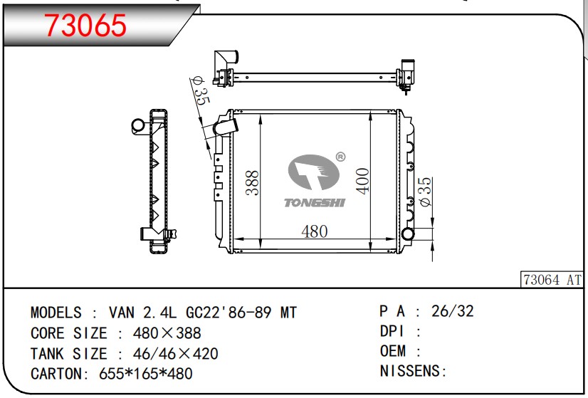 適用于寶馬 E30 320 i 82-93 AT散熱器OEM:1723 825/1719 261