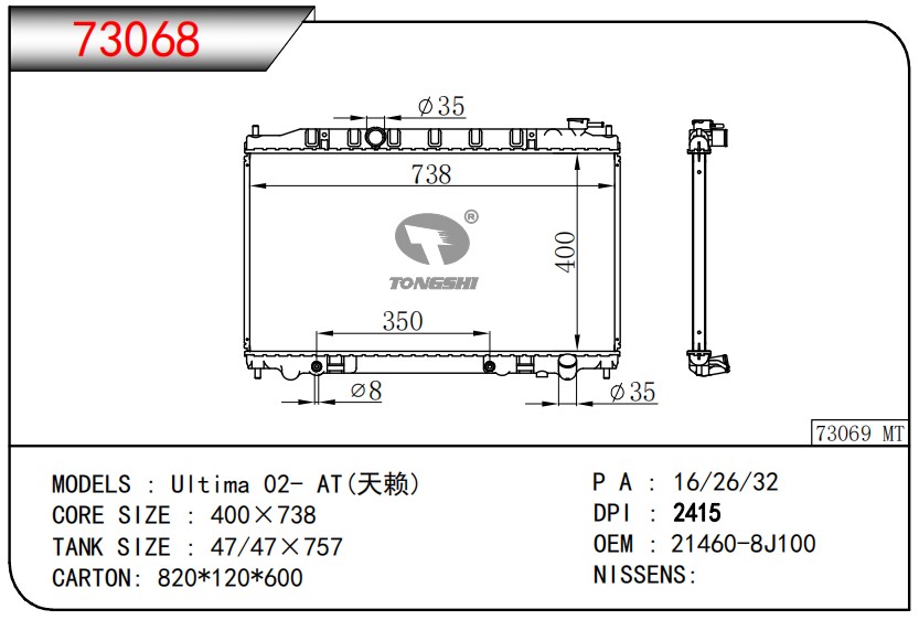 適用于奇瑞瑞虎(新款) MT散熱器 OEM : F1301000B1