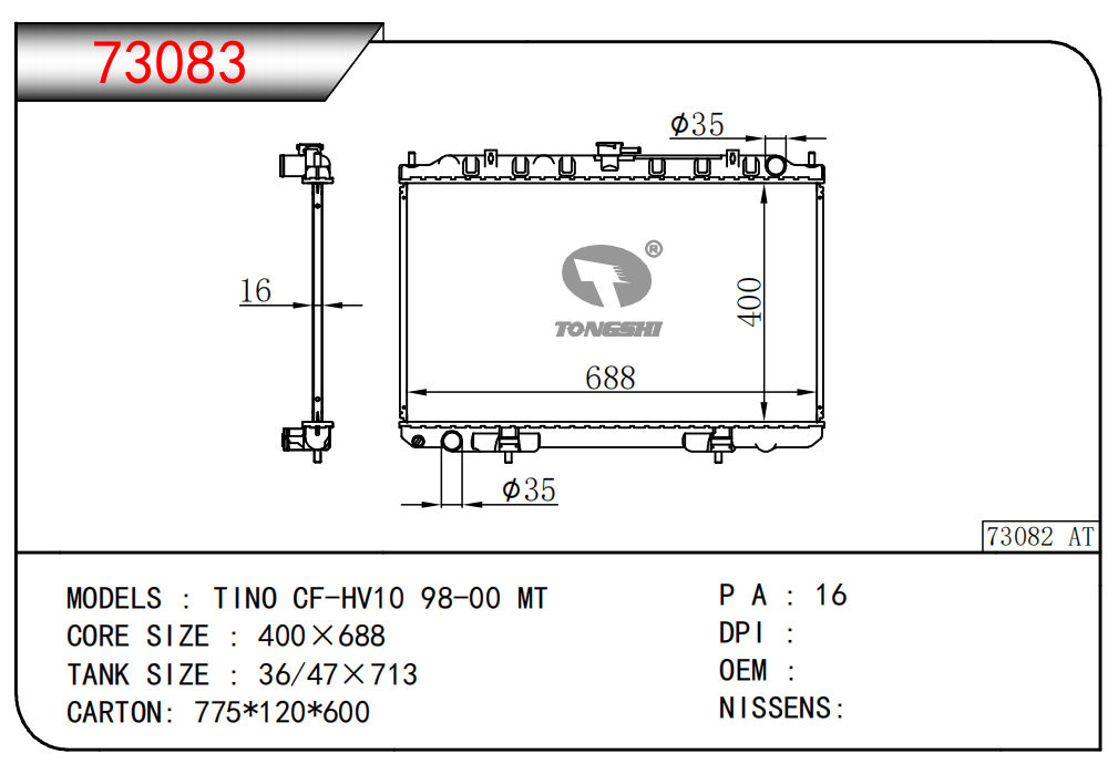 適用于寶馬 E30 320 i 82-93 AT散熱器OEM:1723 825/1719 261