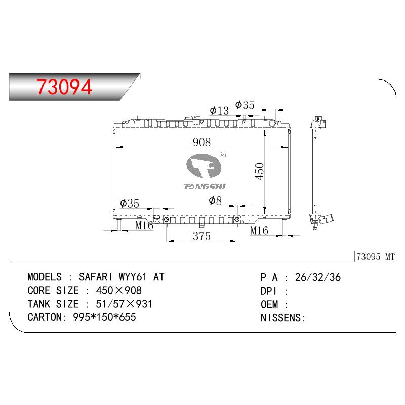 適用于奇瑞瑞虎(新款) MT散熱器 OEM : F1301000B1