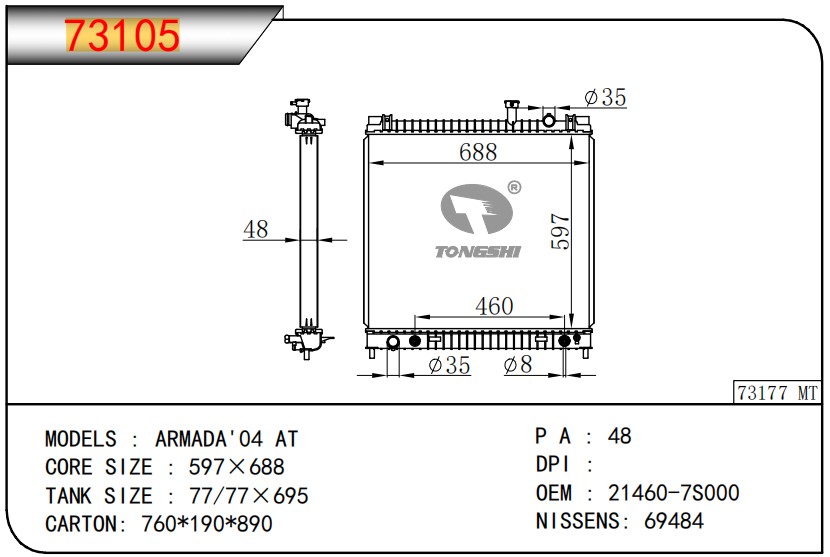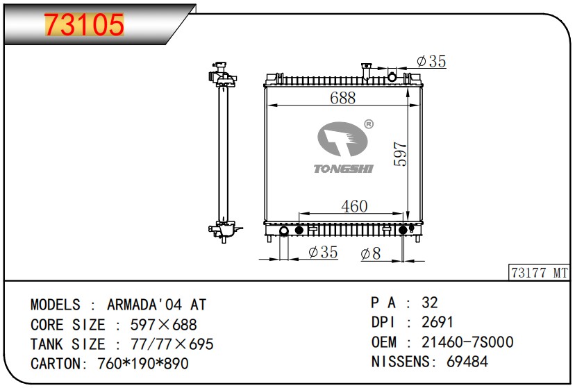 適用于奇瑞瑞虎(新款) MT散熱器 OEM : F1301000B1