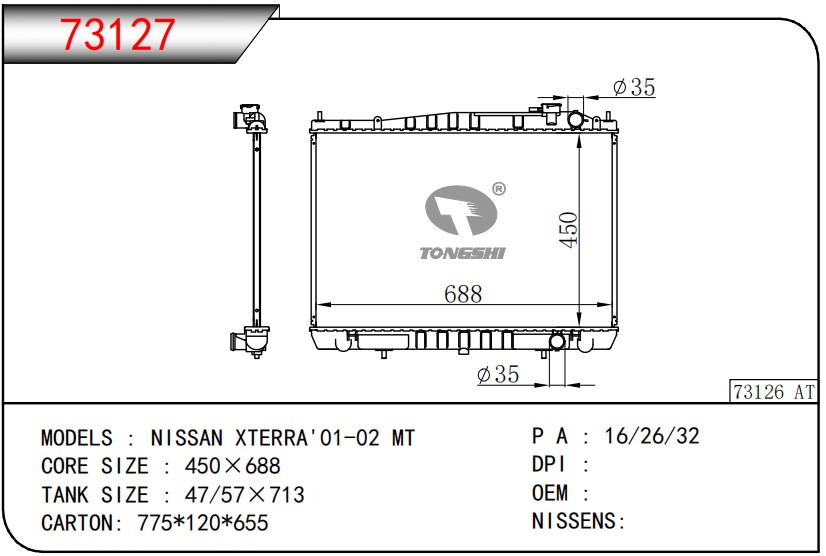 適用于奇瑞瑞虎(新款) MT散熱器 OEM : F1301000B1
