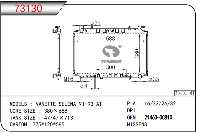 適用于奇瑞瑞虎(新款) MT散熱器 OEM : F1301000B1