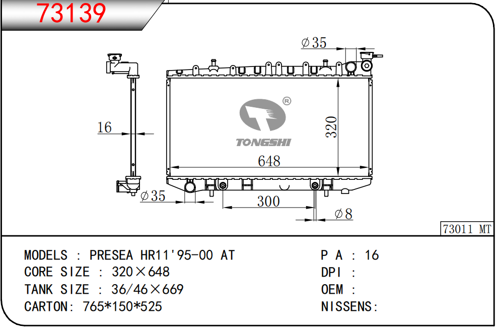 適用于奇瑞瑞虎(新款) MT散熱器 OEM : F1301000B1