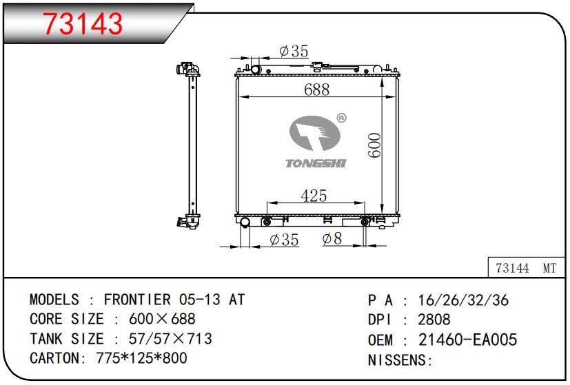 適用于奇瑞瑞虎(新款) MT散熱器 OEM : F1301000B1