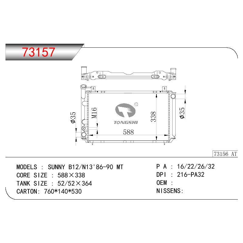 適用于奇瑞瑞虎(新款) MT散熱器 OEM : F1301000B1