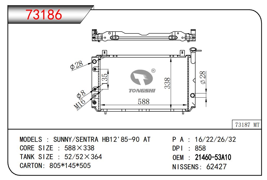適用于奇瑞瑞虎(新款) MT散熱器 OEM : F1301000B1