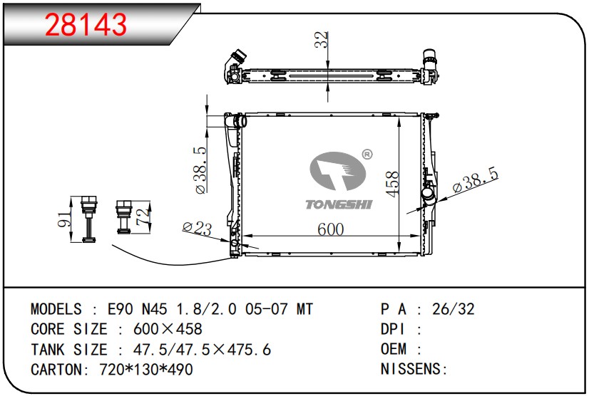 適用于寶馬 E30 320 i 82-93 AT散熱器OEM:1723 825/1719 261