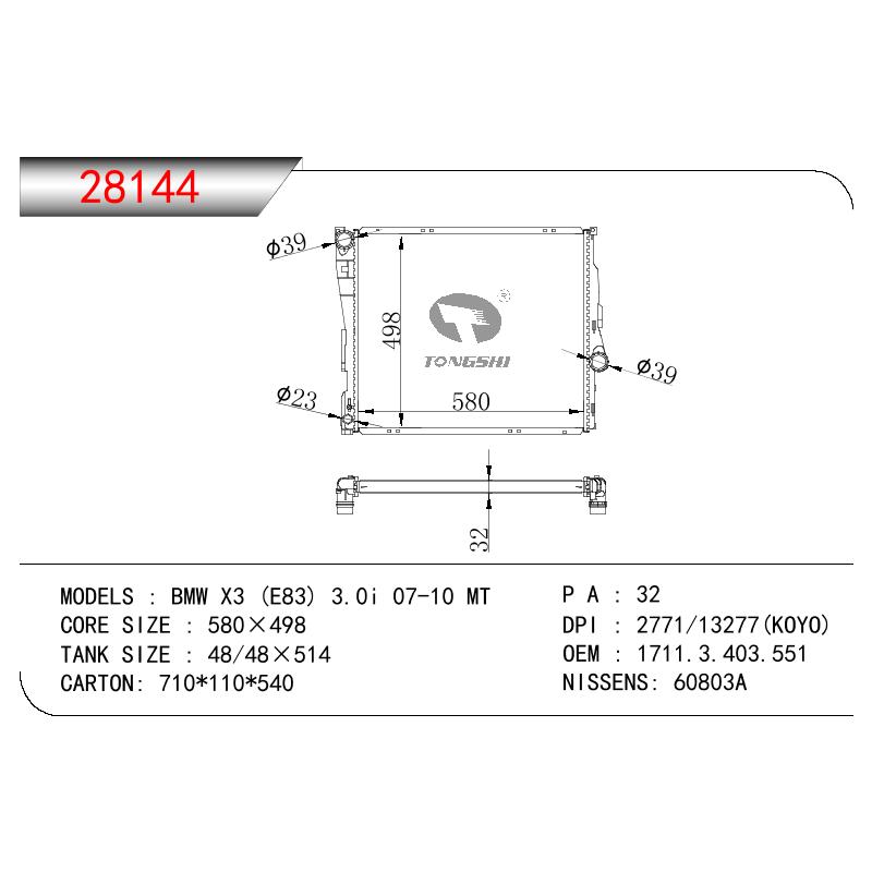 適用于寶馬 E30 320 i 82-93 AT散熱器OEM:1723 825/1719 261