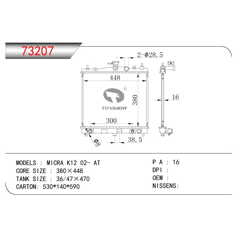 適用于奇瑞瑞虎(新款) MT散熱器 OEM : F1301000B1