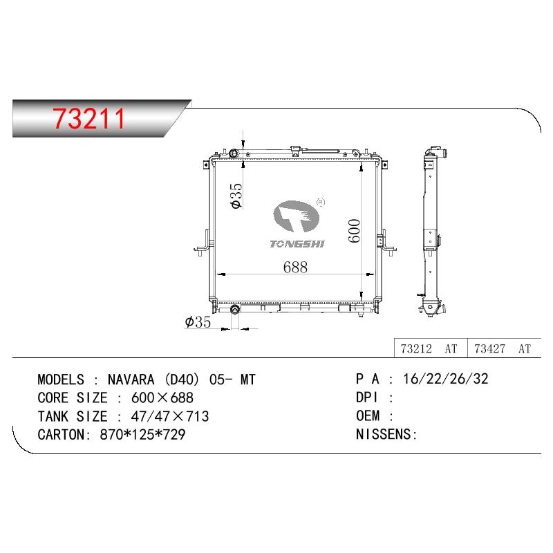 適用于奇瑞瑞虎(新款) MT散熱器 OEM : F1301000B1