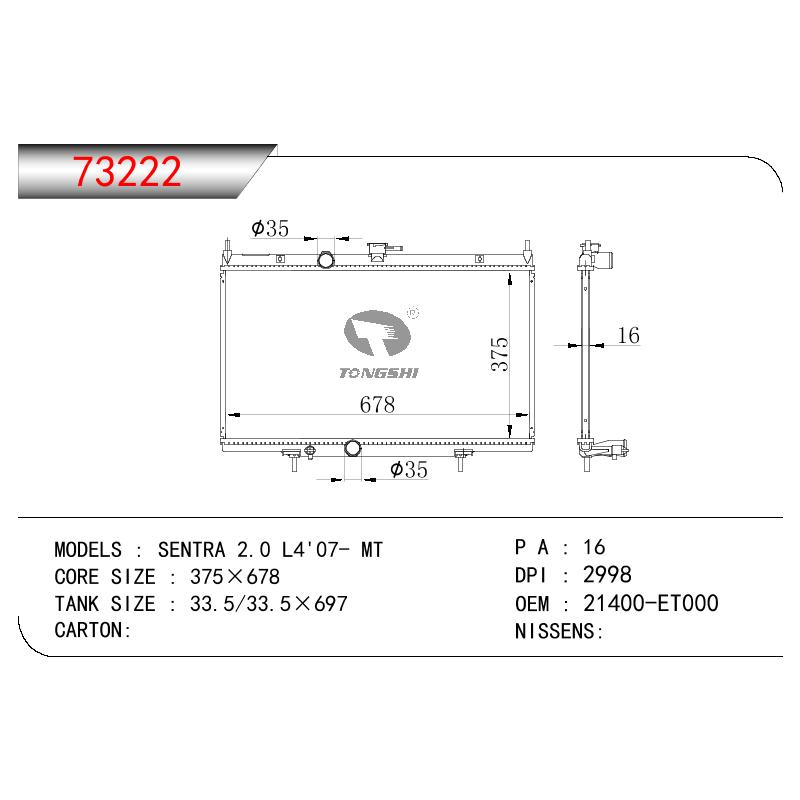 適用于奇瑞瑞虎(新款) MT散熱器 OEM : F1301000B1