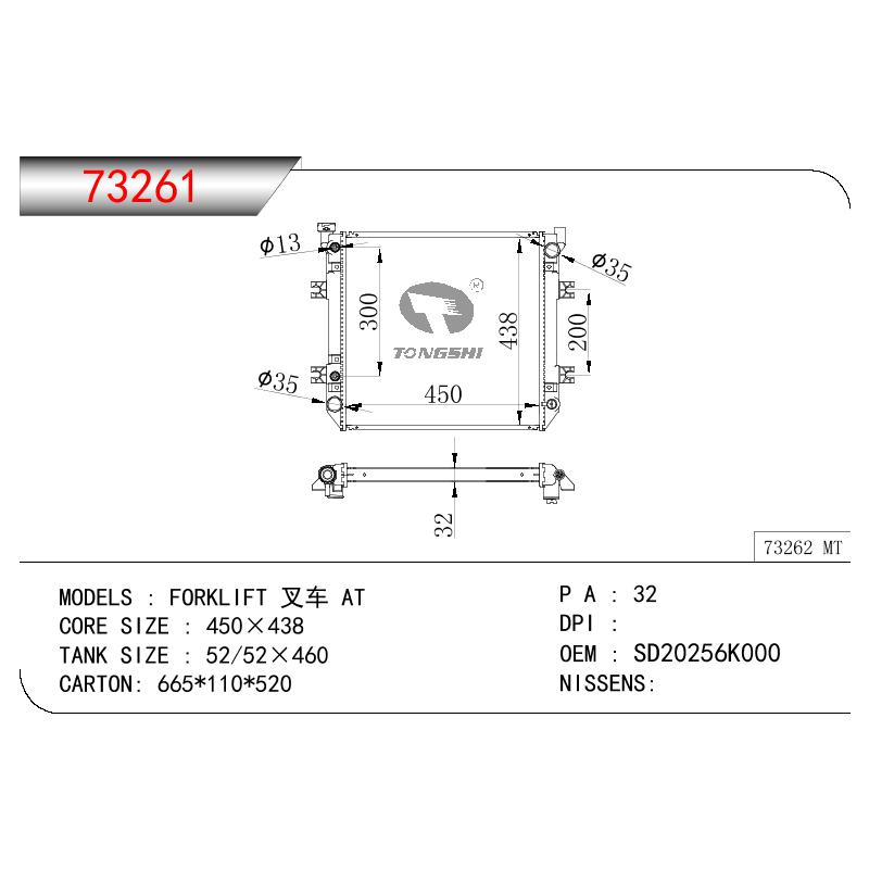 適用于奇瑞瑞虎(新款) MT散熱器 OEM : F1301000B1