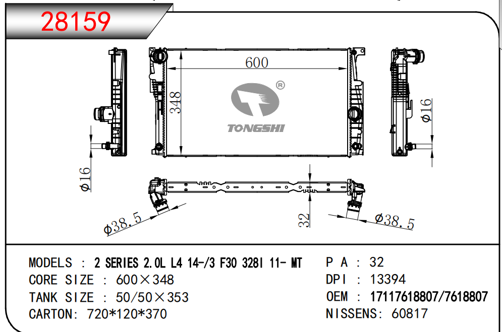 適用于寶馬 E30 320 i 82-93 AT散熱器OEM:1723 825/1719 261