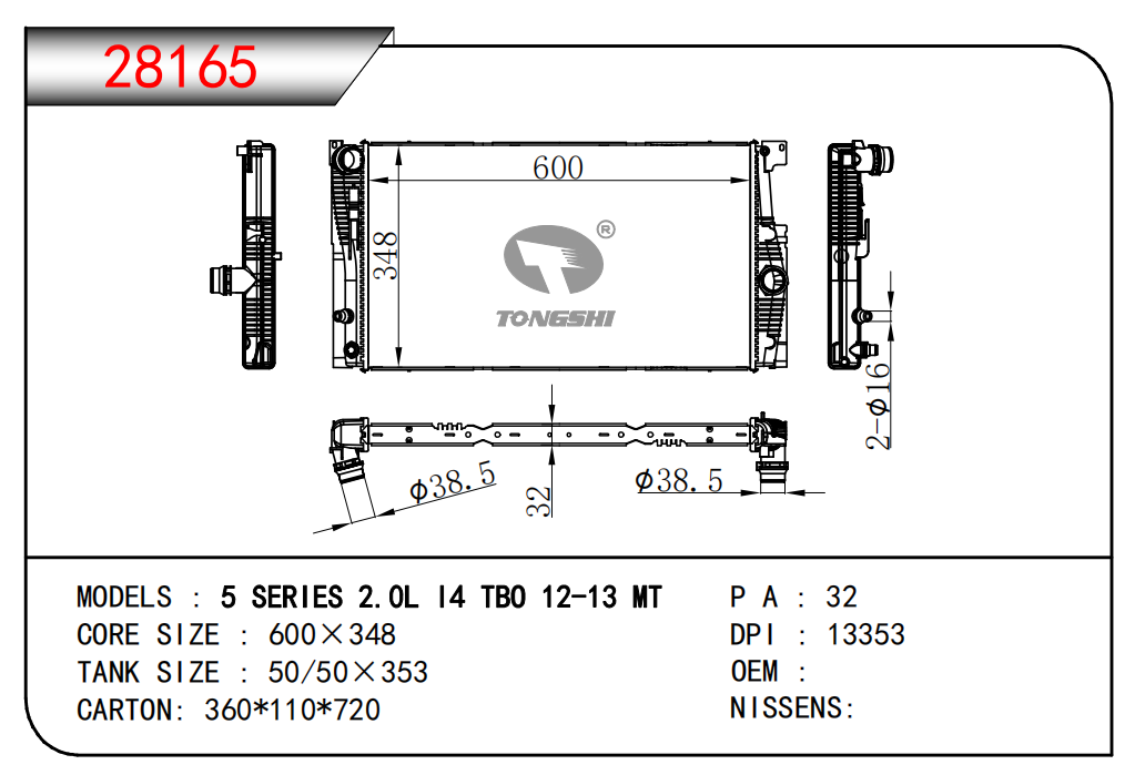 適用于寶馬 E30 320 i 82-93 AT散熱器OEM:1723 825/1719 261