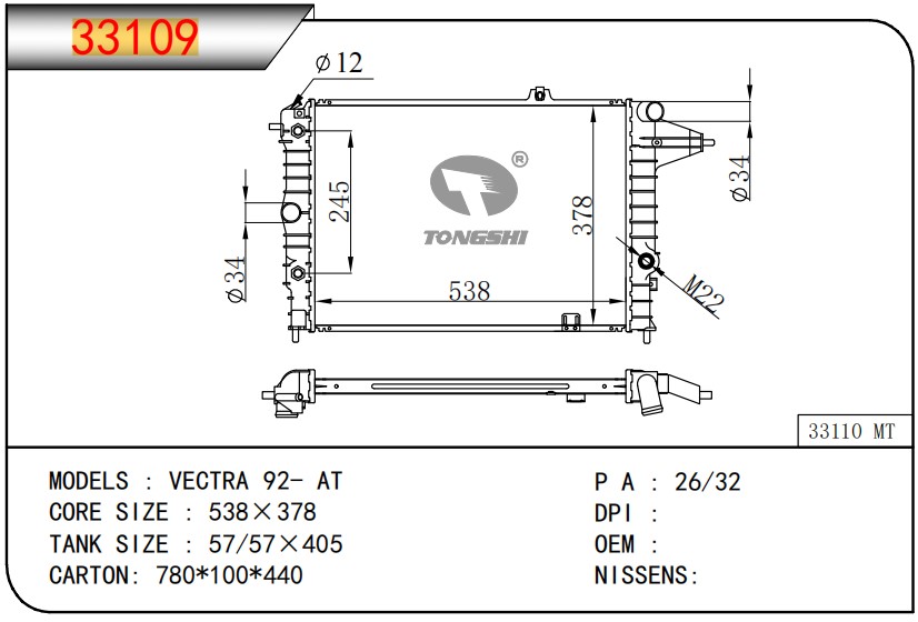 適用于奇瑞瑞虎(新款) MT散熱器 OEM : F1301000B1