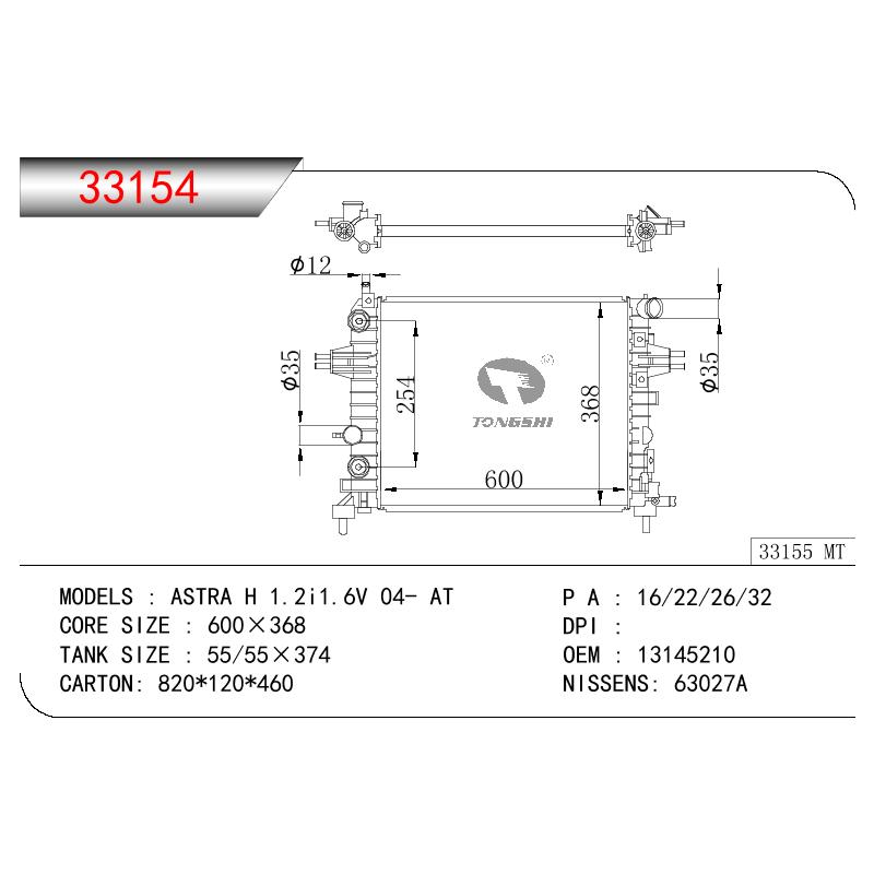 適用于奇瑞瑞虎(新款) MT散熱器 OEM : F1301000B1