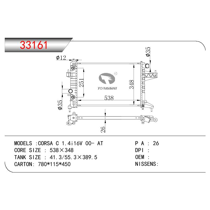 適用于奇瑞瑞虎(新款) MT散熱器 OEM : F1301000B1