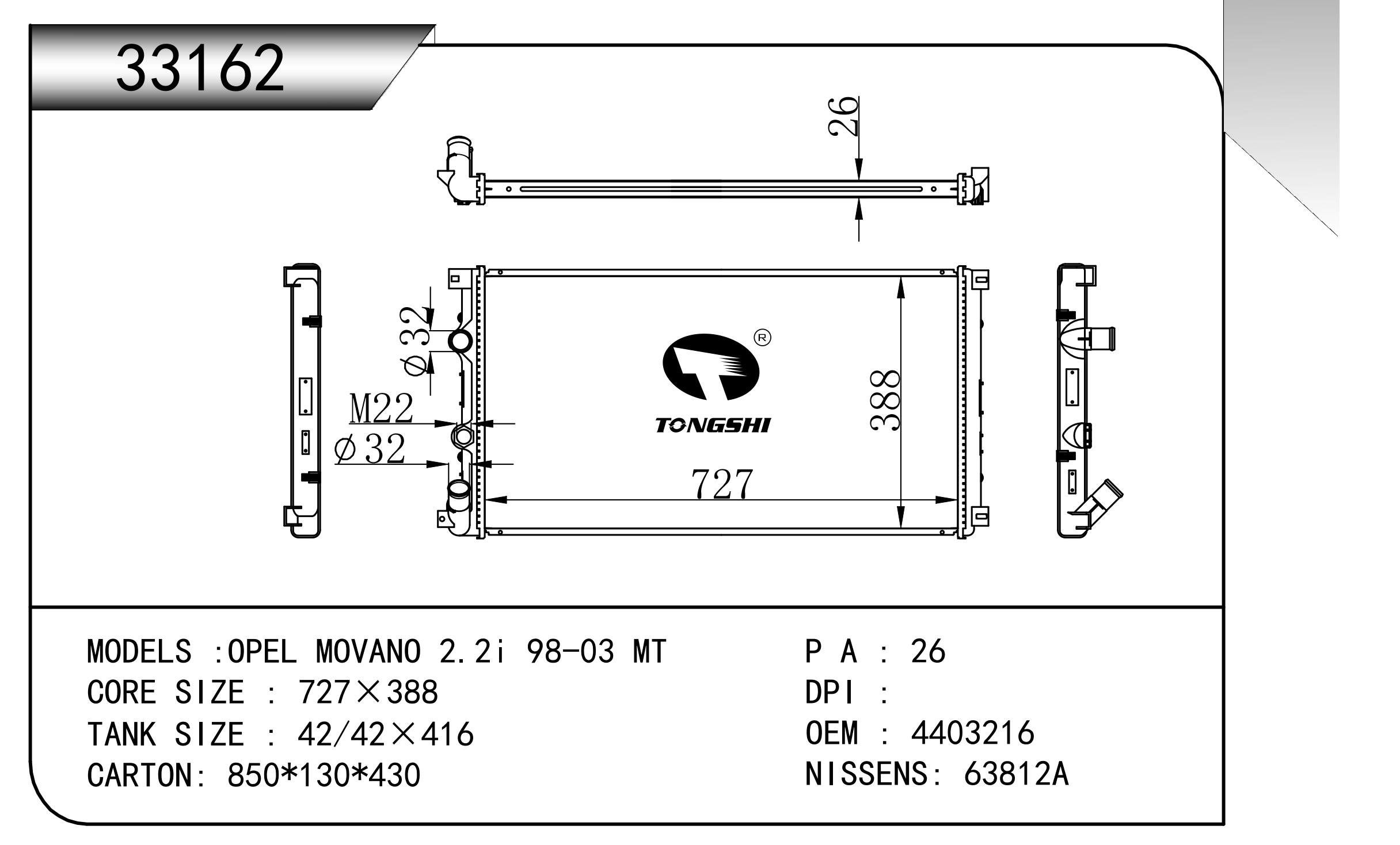 適用于奇瑞瑞虎(新款) MT散熱器 OEM : F1301000B1