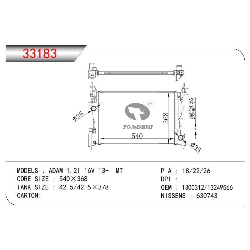 適用于奇瑞瑞虎(新款) MT散熱器 OEM : F1301000B1