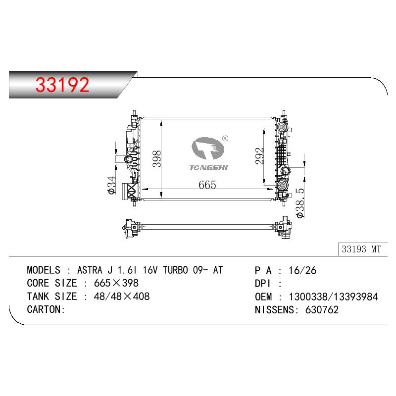 適用于奇瑞瑞虎(新款) MT散熱器 OEM : F1301000B1