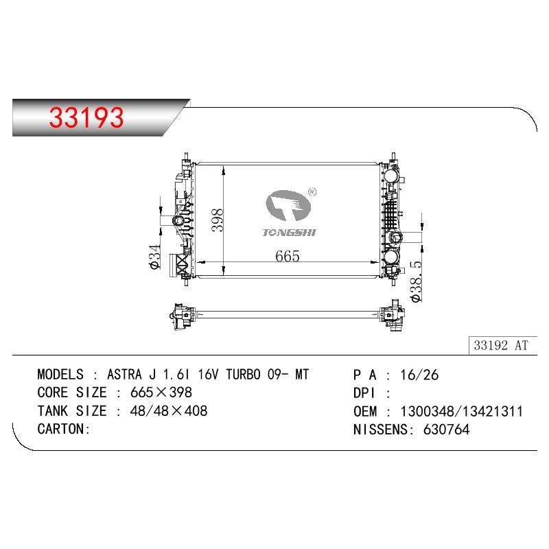 適用于奇瑞瑞虎(新款) MT散熱器 OEM : F1301000B1