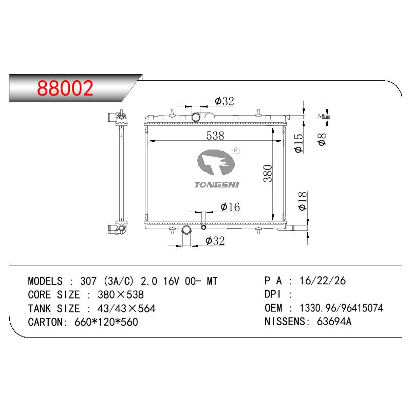 適用于奇瑞瑞虎(新款) MT散熱器 OEM : F1301000B1
