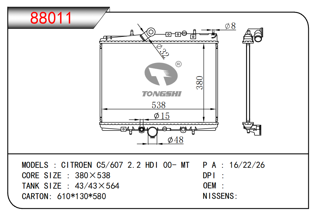 適用于奇瑞瑞虎(新款) MT散熱器 OEM : F1301000B1
