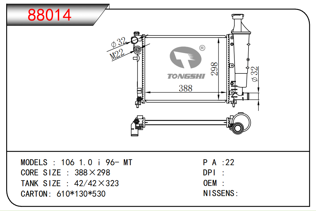 適用于奇瑞瑞虎(新款) MT散熱器 OEM : F1301000B1