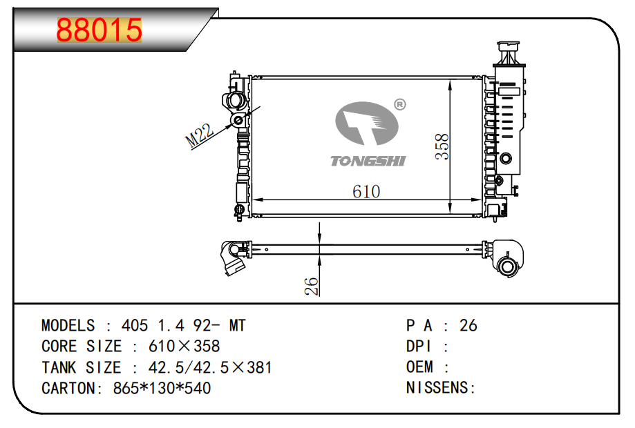 適用于寶馬 E30 320 i 82-93 AT散熱器OEM:1723 825/1719 261