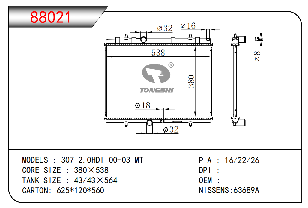 適用于寶馬 E30 320 i 82-93 AT散熱器OEM:1723 825/1719 261