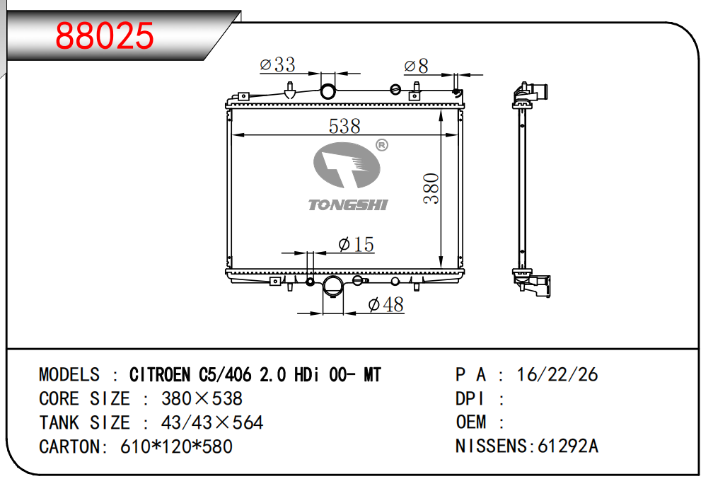 適用于寶馬 E30 320 i 82-93 AT散熱器OEM:1723 825/1719 261