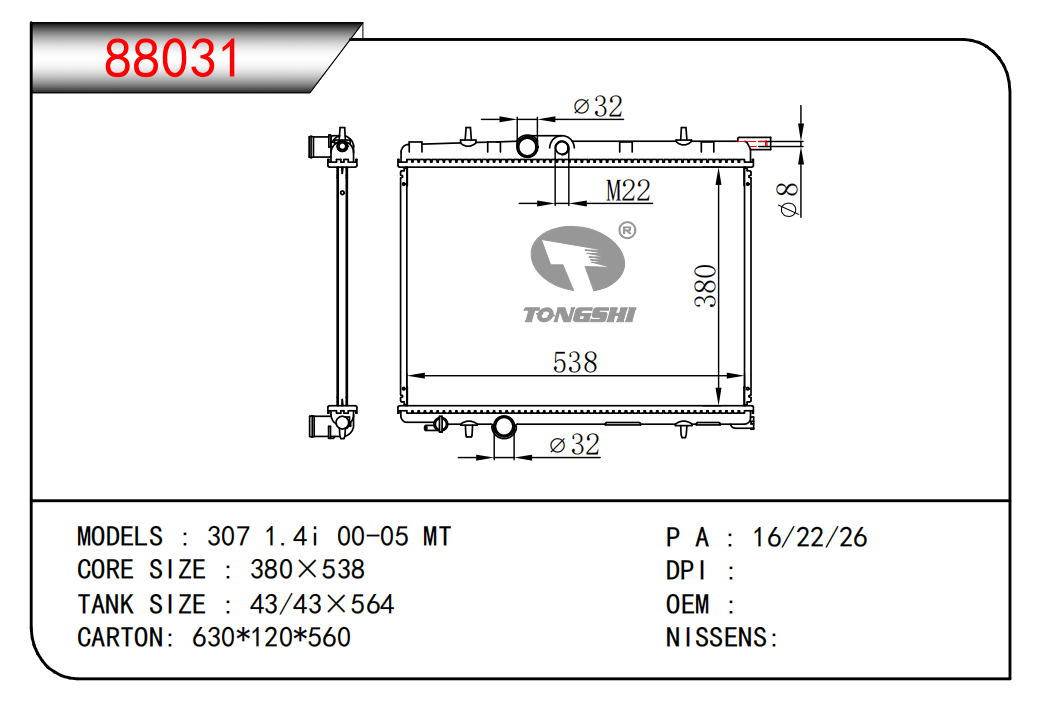 適用于寶馬 E30 320 i 82-93 AT散熱器OEM:1723 825/1719 261