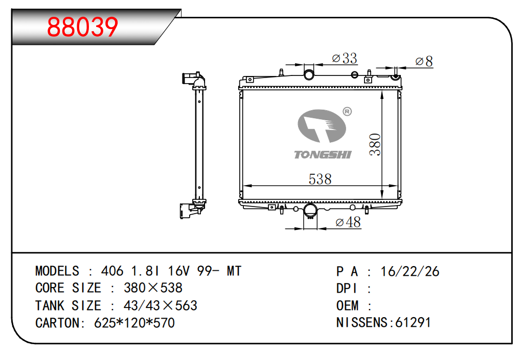 適用于寶馬 E30 320 i 82-93 AT散熱器OEM:1723 825/1719 261