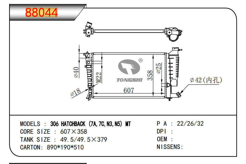 適用于寶馬 E30 320 i 82-93 AT散熱器OEM:1723 825/1719 261